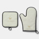 Modern Sage Green Gold Script Monogram Oven Mitt & Pot Holder Set
