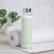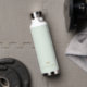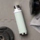 Modern Sage Green Gold Script Monogram Water Bottle. A modern, elegant monogram design with gold handwritten minimalist script typography and sans serif block typography on an elegant pale pastel Sage Green background. The monogram and name can be easily personalised.