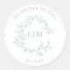 Modern Sage Green Leafy Crest Monogram Wedding Classic Round Sticker