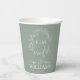 Modern Sage Green Leafy Crest Monogram Wedding Pap Paper Cups