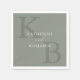 Monogram wedding napkins featuring modern minimalist typography name and initials in sage green colour design.