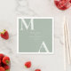 Modern wedding napkins featuring your monogram initials and names in minimalist typography on sage green colour.