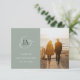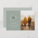 Modern Sage Green Monogram Photo Wedding Thank You, Card. Stylishly impress your guests with this elegant, simple, moss green, photo wedding thank you card, with an elegant initials script in black and sage green, over a plain green background, alongside a personalised photo of the now-married couple. The stylish initials are repeated again on the back of the card in reverse colours. This minimal wedding thank you card gives an elegant, sophisticated feel to your sage green wedding.