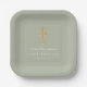 Modern Sage Green Religious Cross Boy Confirmation Paper Plates