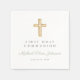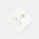 Personalised Modern Sage Green Religious Cross First Communion Napkins. Part of the Elegant Sage Green Religious First Communion Suite with matching invitation, stationery and party accessories available.