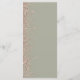 The left-hand edge of this elegant modern wedding menu features a rose gold faux glitter design. The customisable text combines cream handwriting, copperplate and italic fonts on a sage green background. The reverse side features a matching sage green and rose gold glitter design.