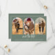 This simple modern wedding save the date card in sage green is perfect for sharing with your wedding guests the good news of your upcoming wedding. The minimalist style features three arch frames photos of the bride and groom on the front with the words "save the date" in a modern script font. The back has room for an additional photo any other details you wish to share about your wedding including your wedding website.