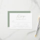 Simple, elegant wedding RSVP cards featuring a sage green, handwritten script mixed with modern lettering against a white background. Personalise the minimalist wedding RSVP cards with your desired response date, custom accepts/declines wording, and meal options. The chic sage green wedding RSVP cards are the perfect choice for modern weddings.