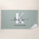 This simple, elegant sage green beach towel with your first name in a trendy script font in black, your first initial in a modern cap font in white, and your full name in CAPS in black is perfect for you. It's stylish and trendy and yet very classic. Get a bunch for the beach or for your pool and deck area. They'll come in so handy.