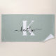 Modern Sage Green Script Monogram Beach Towel