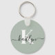 This simple, elegant sage green keychain with your first name in a trendy script font in black and your first initial in a modern cap font in white is perfect for your keys. It's stylish and trendy and yet very classic.