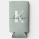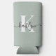 Modern Sage Green Script Monogram Seltzer Can Cooler