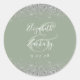 Modern Sage Green Silver Glitter Edge Wedding Classic Round Sticker