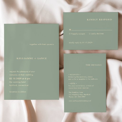 Modern Sage Green Simple Wedding Invitation SuiteDesigned by Cynthia