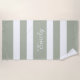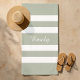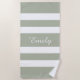 Personalised Modern Sage Green Striped Pattern Name Beach Towel.