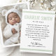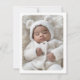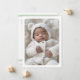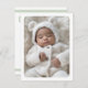 White or any colour birth announcement thank you card with your custom photo on the front. Customisable message on the back with light sage green borders top and bottom. You can change all colours, move and resize elements with the design tool.