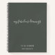This modern custom sketchbook features a minimalist elegant cover design in dark sage green with calligraphy script typography. Personalise it with your name and text of choice like the number of your sketchbook. Also a great gift idea for any artist, friend or kid.