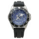 A silver chrome like Sagittarius zodiac symbol on a vibrant navy blue digital camouflage design texture print background. A modern urban racy design for a great custom birthday fashion watch gift idea.