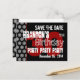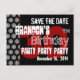 Here's a trendy save the date postcard in black and white with accents of red for a 30th birthday party. Fun! All text is customisable.