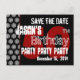 Here's a trendy save the date postcard in black and white with accents of red for a 50th birthday party. Fun! All text is customisable.