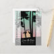 Modern design with flamingo, sunset and palm trees. Please personalise text on both sides. (Names, date, location, etc.) Appropriate for the announcement of weddings so the guests can save the date in time.
