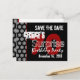 Here's a trendy save the date postcard in black and white with accents of red for a surprise 70th birthday party. Fun! All text is customisable.