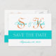 Modern Save the Date Teal Orange Double Monogram Announcement Postcard