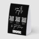 A modern black business paper table tent sign design allowing your customers to connect and pay instantly with 3 payment available payment options. A minimalist personalized scan and pay business table tent sign with your custom business logo. Customize the table tent sign with your text and make it your own..