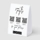 A modern business paper table tent sign design allowing your customers to connect and pay instantly with 3 payment available payment options. A minimalist personalized scan and pay business table tent sign with your custom business logo. Customize the table tent sign with your text and make it your own..