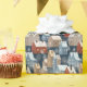 Modern Scandi Winter Town Houses Pattern Blue Red Wrapping Paper