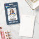 A modern minimalist student id badge. The design features your school's logo and name. It shows a large student id photo. Information can be personalised and so far includes the student's name, ID number, as well as date issued and the expiration date, below that a barcode. At the bottom it shows the student's designation. On the back of the Badge there is QR code for you to use. You can link anything you want ie: a syllabus, student portfolio or QR codes your professors provide. This ID Badge would also work for teachers. Personalise the design elements and colours to match your school and delete what you don't need! Colour: Green