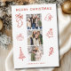 Celebrate the season with a personal touch! This festive Christmas card features space for three of your favourite family photos, surrounded by playful red scribble-style holiday doodles — including a Christmas tree, bells, stocking, and candy cane. The cheerful red “Merry Christmas” greeting and your family name make it easy to send warm, personalised wishes to friends and loved ones. Perfect for sharing your holiday memories in a fun and stylish way.