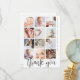 Send a ´´thank you´´ message to your family and friends while showcasing some of your favorite moments from the year! This modern minimalist multi-photo collage postcard features a collage of twelve square photos. Below, in modern script lettering, is written ´´thank you´ and on the side, there are your details. These cards reverse to a heartfelt message that ends with a boho tiny heart. Click on "Personalize this template" to edit the text and upload your own photos. For more advanced modifications, simply scroll to "Click to customize further" and use the Zazzle design tool. This postcard will be a favorite keepsake for years to come! Perfect for your baby´s first birthday and any other special day to follow!
