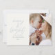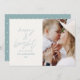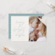 Modern script 1 photo merry & bright Christmas card. Modern dusty blue polka dot backer.