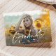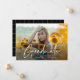 A Modern Script 2 Photo Graduation Announcement with handwritten font full bleed horizontal photo on the front with name and graduation details. The back has a modern grid pattern. Click the edit button to customise this design.