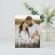This modern 2 photo wedding thank you note features white script thank you, personal message and a vertical photo on the front. The back includes a second photo that is a full bleed horizontal photo. Click edit to customise this design.