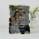 A modern and trendy double-sided all-in-one wedding invitation displaying your wedding information over one of your favourite pictures with a black transparent overlay and accented by elegant script typography in real gold foil.