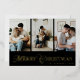 Modern Script 3 Photo Collage Merry Christmas Foil Holiday Card