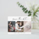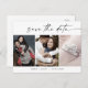 This modern script 3 photo template save the date postcard is perfect for a minimalist wedding. The simple black and white design features unique industrial lettering typography with modern boho style. Customisable in any colour. Keep the design minimal and elegant, as is, or personalise it by adding your own graphics and artwork.