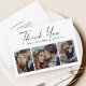 Script 3 photo wedding elegant stylish modern thank you card. Part of a wedding collection.The back includes a thank you message that you can personalise for each guest or remove if you prefer to hand write your thank you. Click the edit button to customise.
