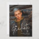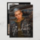 Modern script Graduation Announcement with graduation cap and 4 photos, simple and fun. Custom it with your own photos and grad party information.