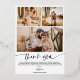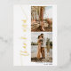 Modern simple and elegant brush script with 5 photos collage grid wedding thank you black and white with real gold foil.