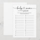 Have baby shower guests participate in an a baby name race activity with this minimalist and elegant game card, featuring a modern script with heart flourish.