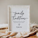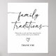 Invite baby shower guests to participate in a 'Family Traditions' activity with this simple and elegant table sign, featuring a modern script with heart flourish.