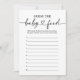 Invite baby shower guests to participate in a game of 'Guess the Baby Food' with this simple and elegant game card, featuring a modern script with heart.