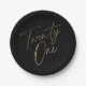 Modern Script Black and Gold 21st Birthday Party Paper Plate
