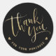 Modern thank you script in faux gold foil with custom your own text on colour editable black background, simple and chic, professional business thank you for your purchase stickers for customer.