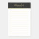 To do List Post-it Notes feature custom name in gold modern script font style with custom text in gold modern sans serif font style, on black with gold stripe upper border, on white background.