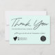 Modern brush script black and pastel teal mint green business order thank you. Add your social media. With an elegant signature script font, all the colours are editable , add your logo.