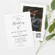 Modern Script Black and White QR code Wedding Invitation. The back has a photo (that you can remove) and additional details with RSVP QR code. Click the edit button to personalise this design to fit your needs.